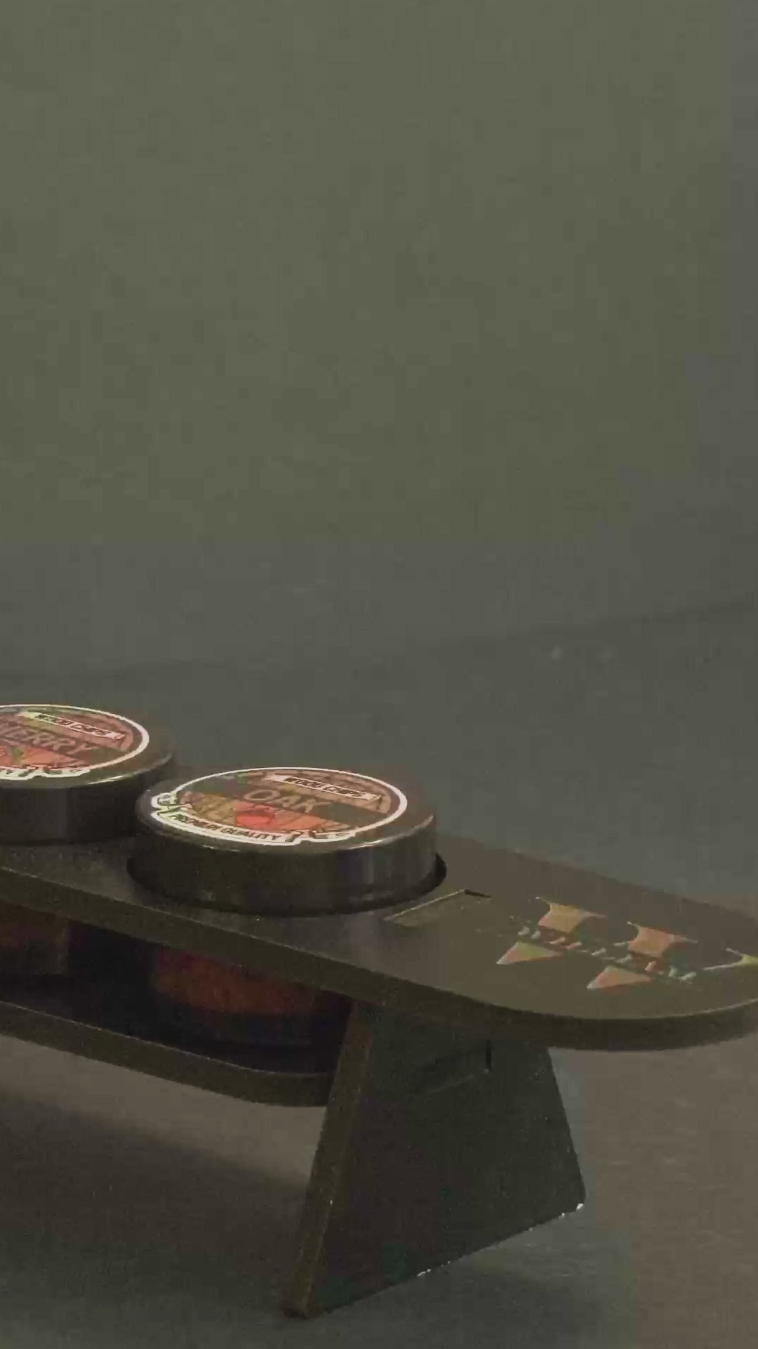 El yapımı Maun ağacı smoker, pirinç talaş haznesi, torch çakmak, üç çeşit doğal ağaç talaşı (meşe, akçaağaç, kiraz), çelik filtreler, seperatörlü kutu, sergileme standı(opsiyonel), bakım&kullanım kılavuzu.